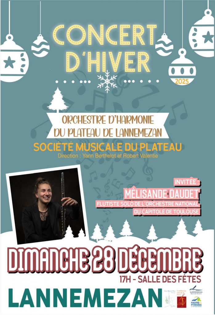 L’Orchestre d’Harmonie de la Société Musicale du Plateau de Lannemezan a le plaisir de vous inviter à son traditionnel Concert d’Hiver 🎵